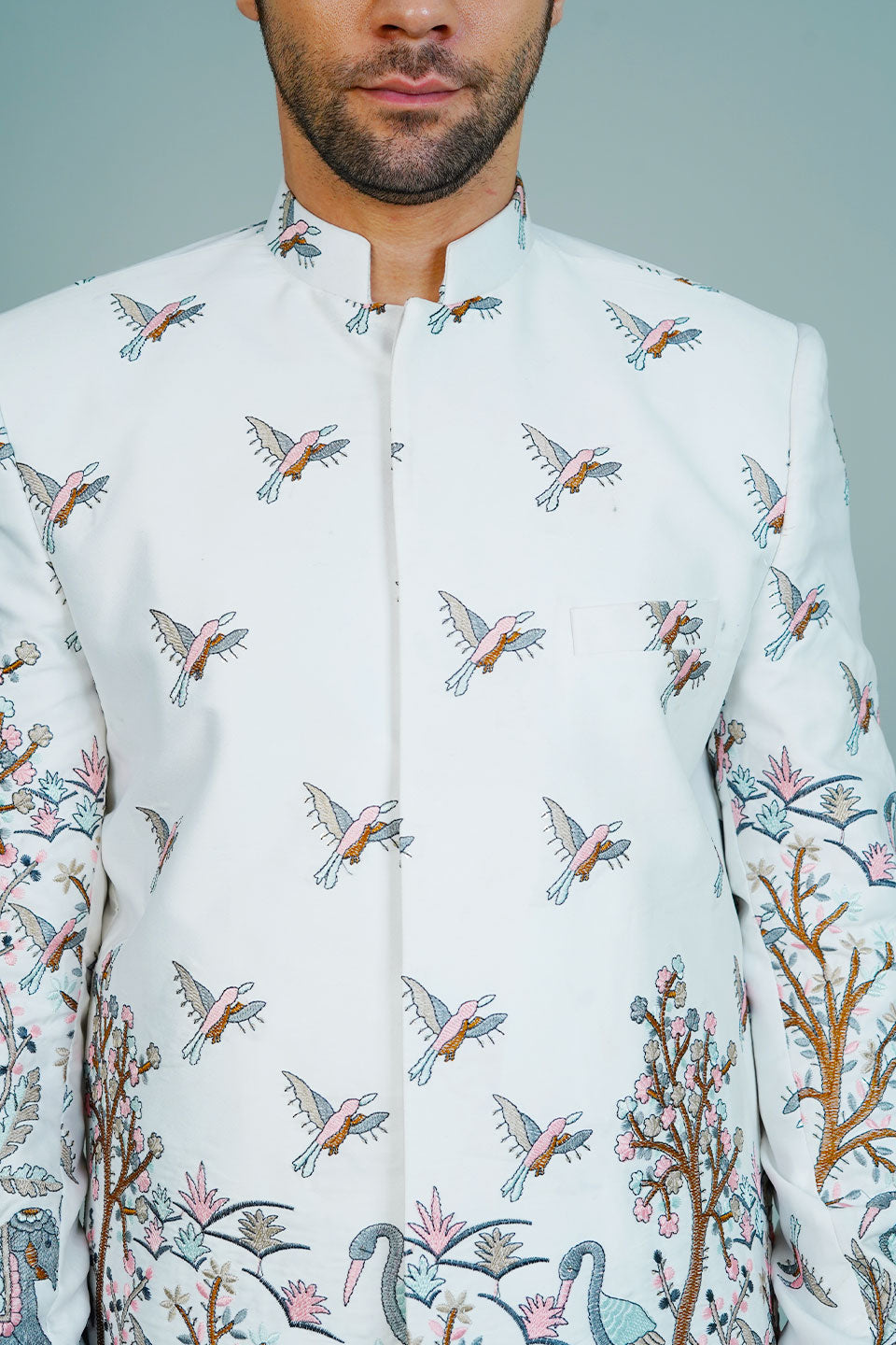 Embroidered Polyester Satin White Bandhgala