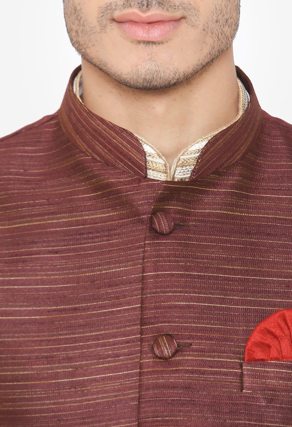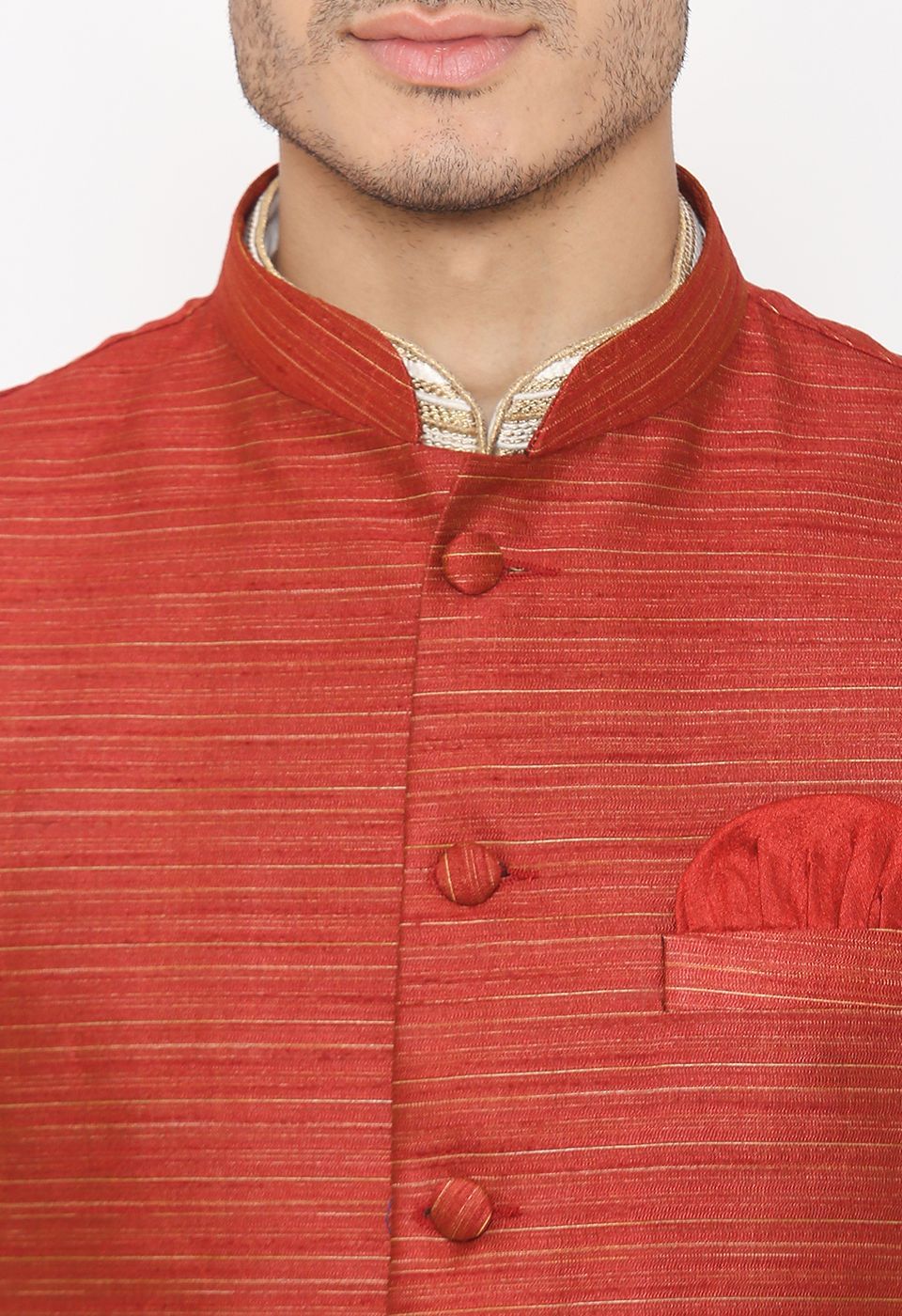 Banarasi Rayon Cotton Red Nehru Modi Jacket