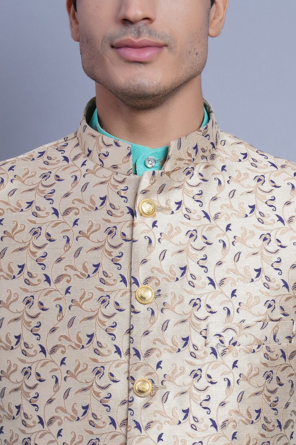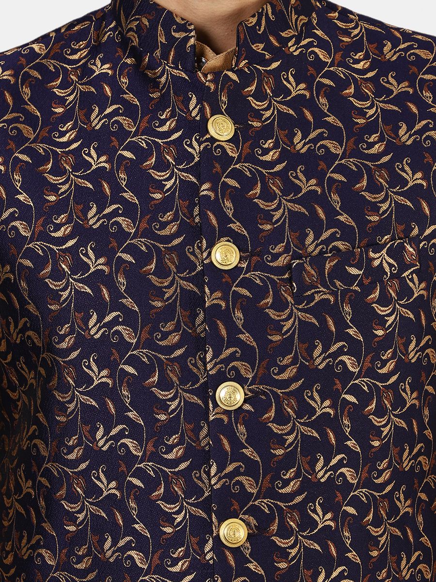 Banarasi Rayon Cotton Blue Modi Nehru Jacket