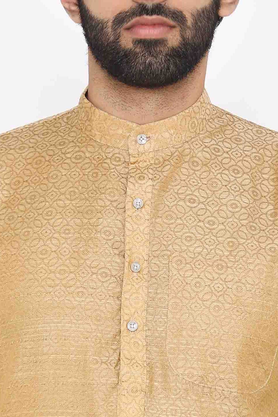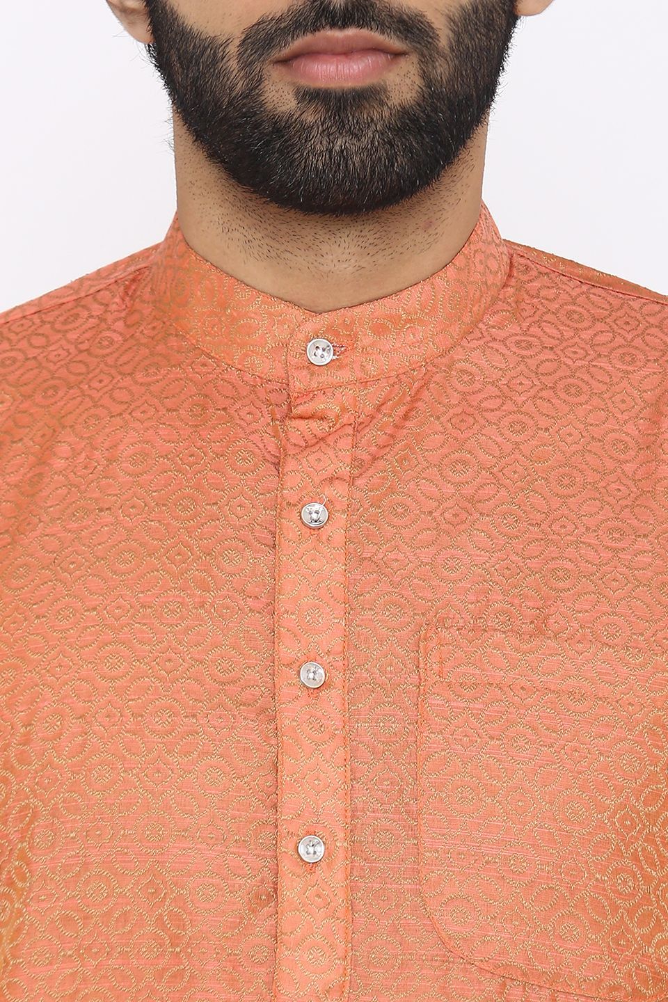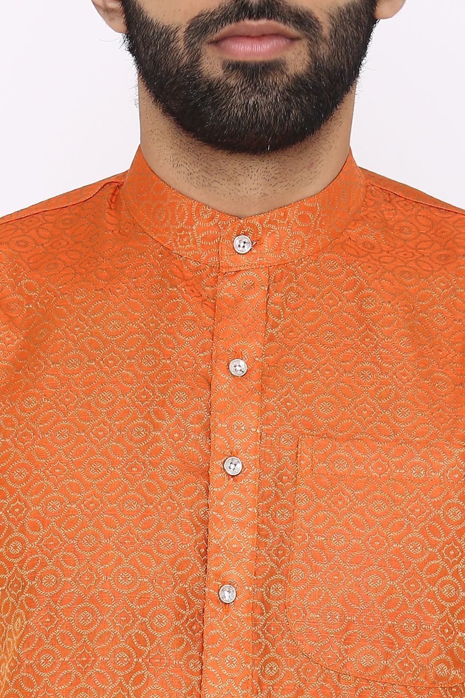 Banarasi Art Silk Cotton Blend Orange Long Kurta Pajama