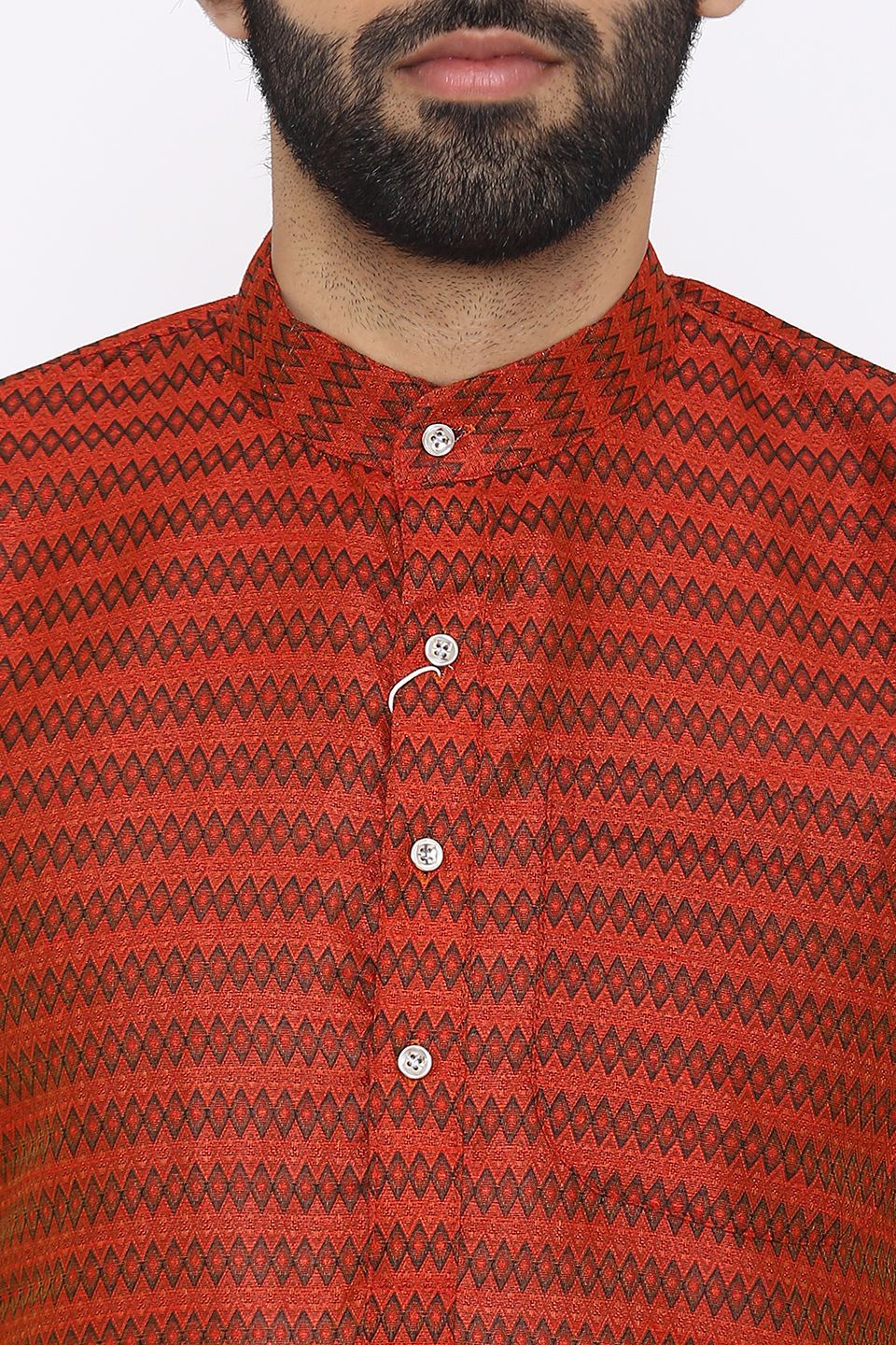 Banarasi Art Silk Cotton Blend Red Long Kurta Pajama