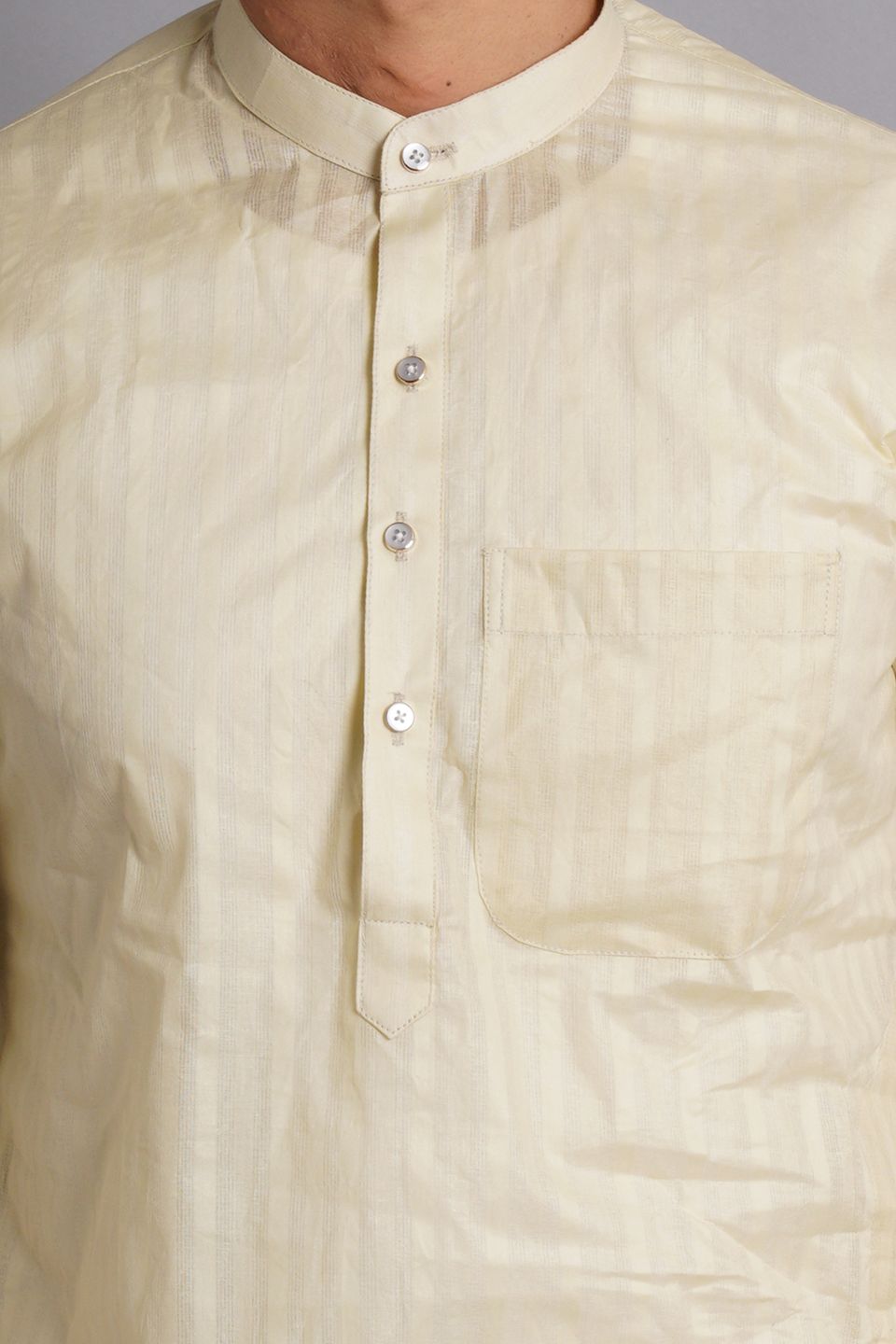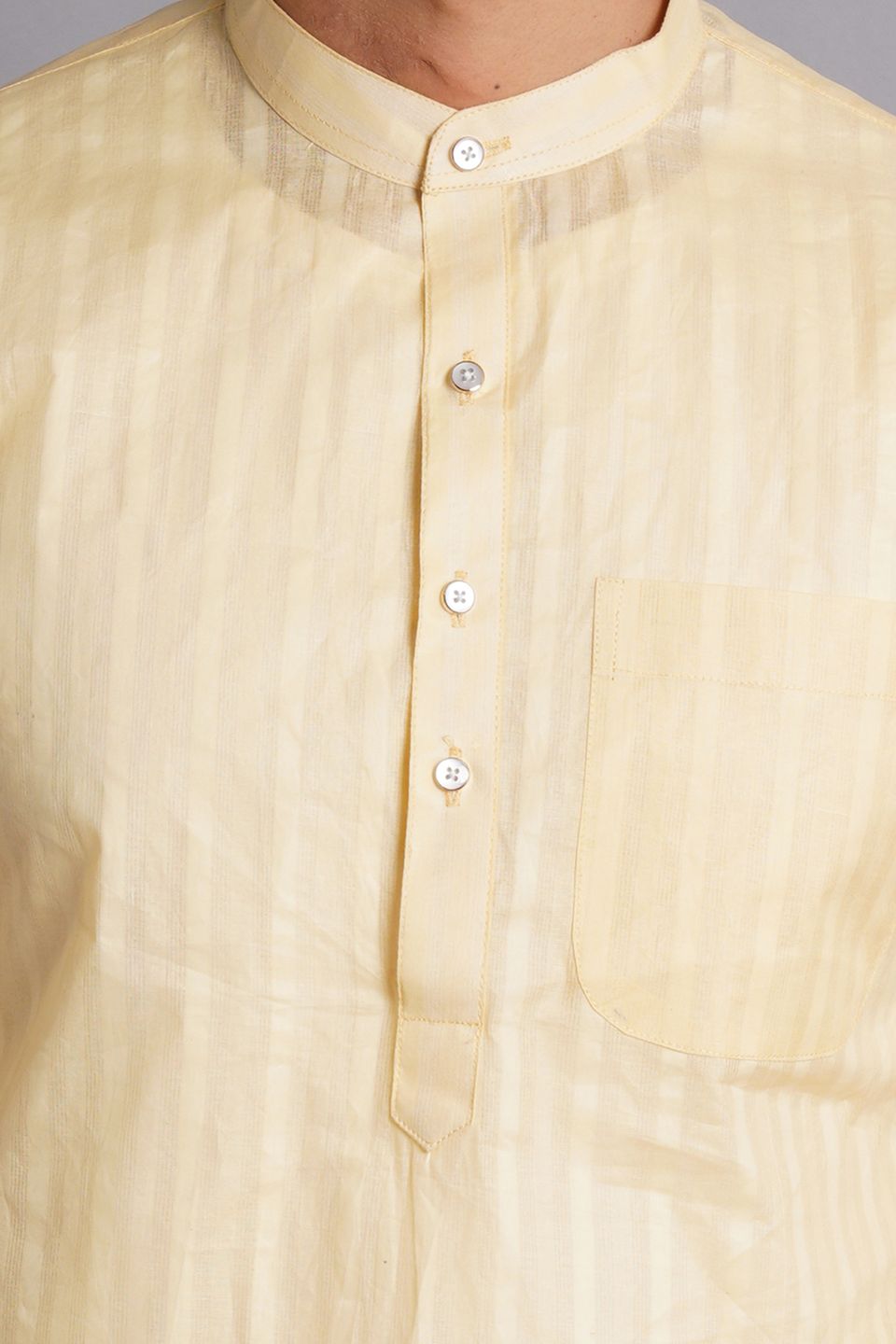 Cotton Yellow Striped Long Kurta Pajama