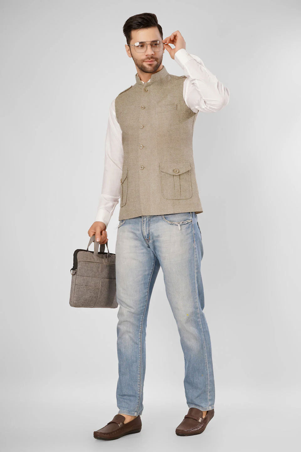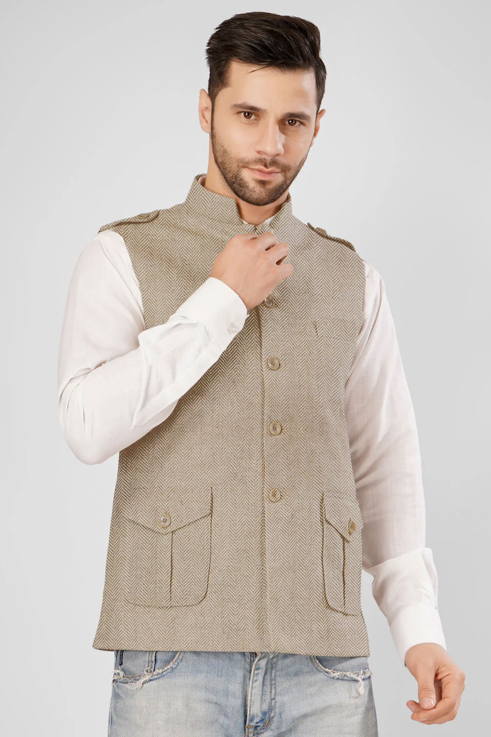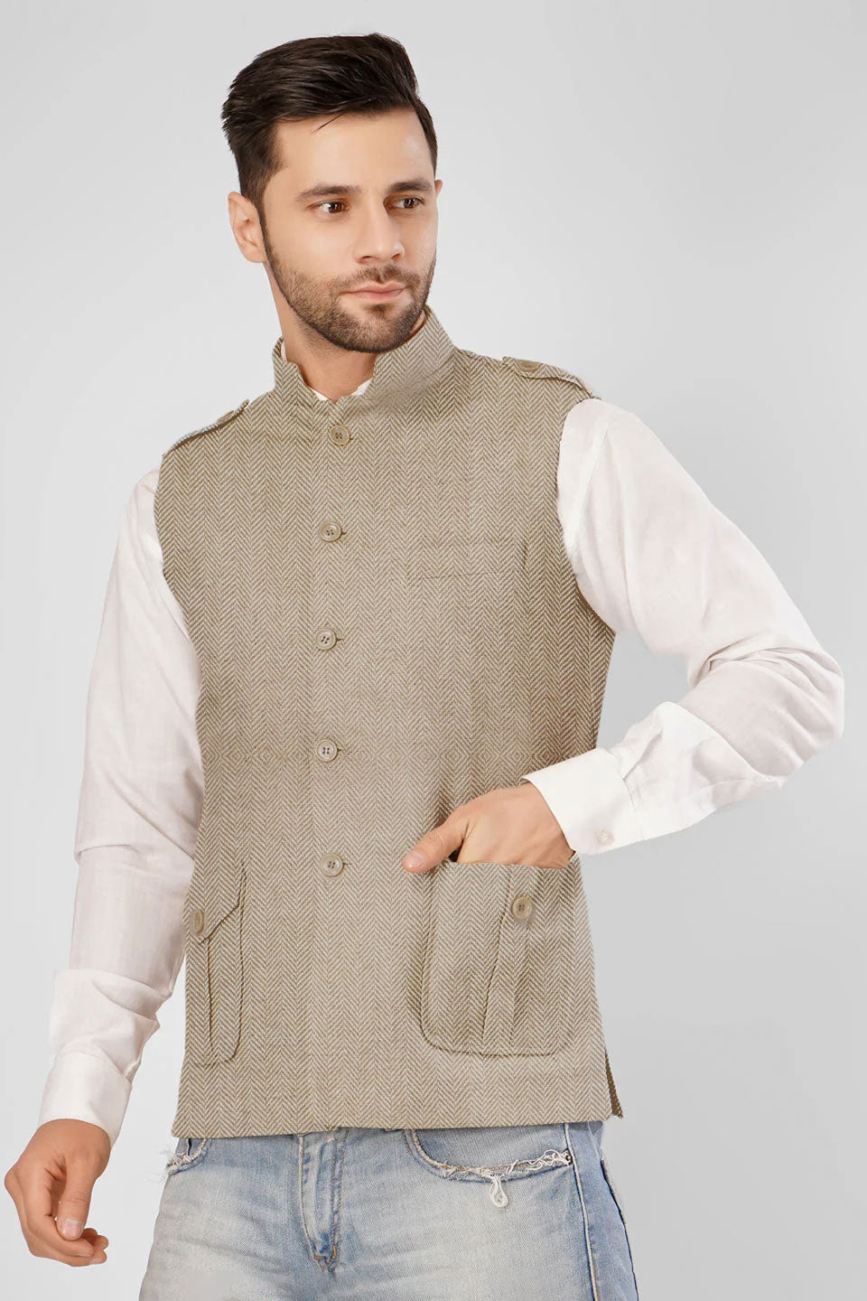 Tweed Wool Blend Grey Modi Nehru Jacket