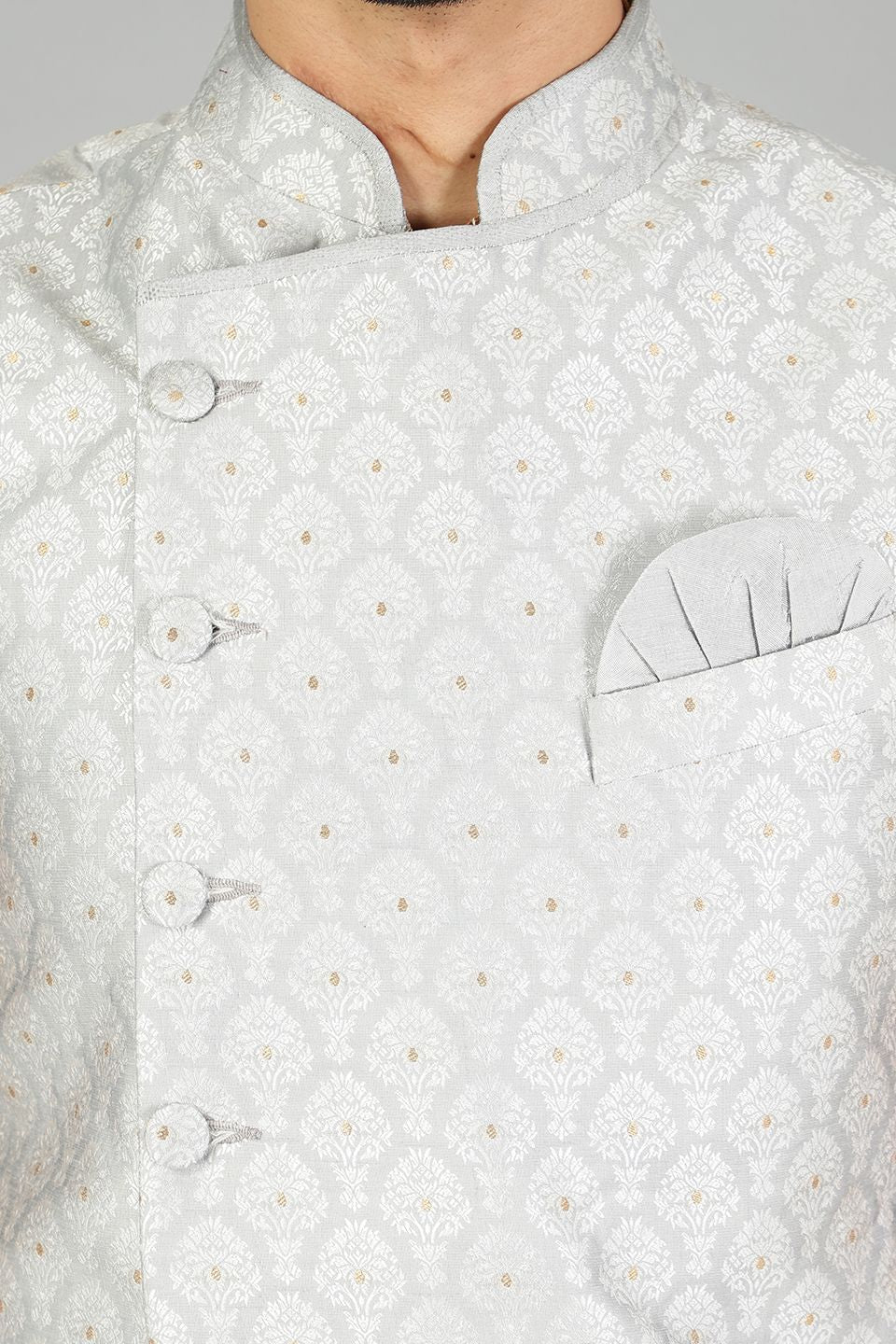 Banarasi Rayon Cotton Plain Blue Modi Nehru Jacket