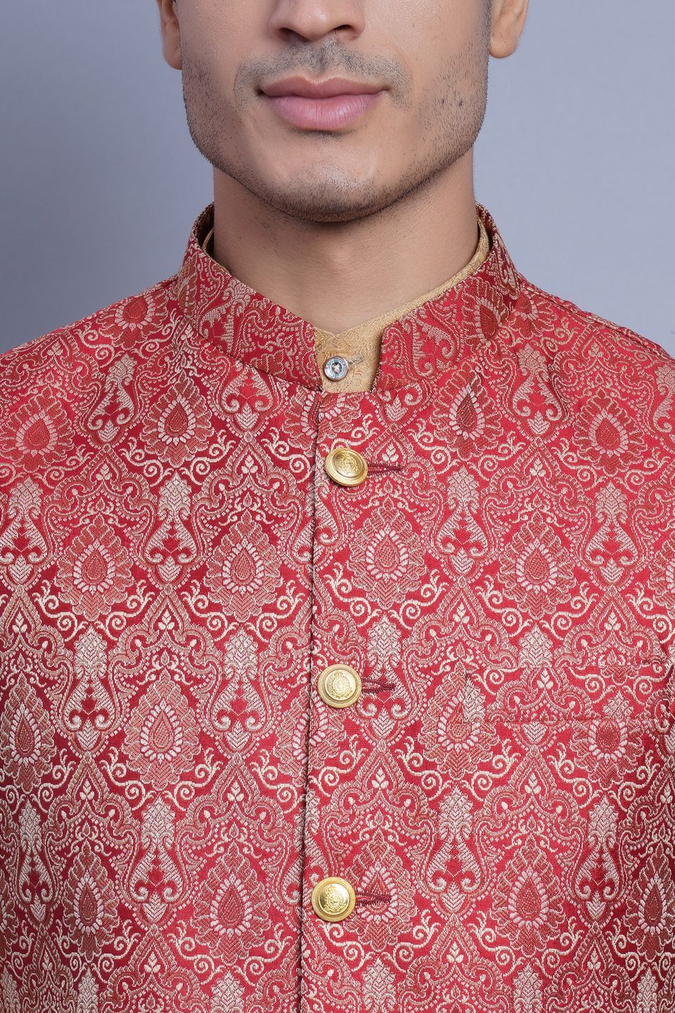 Banarasi Rayon Cotton Red Modi Nehru Jacket