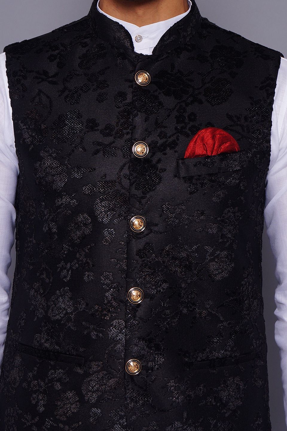 Emroidered Velvet Black Modi Nehru Jacket