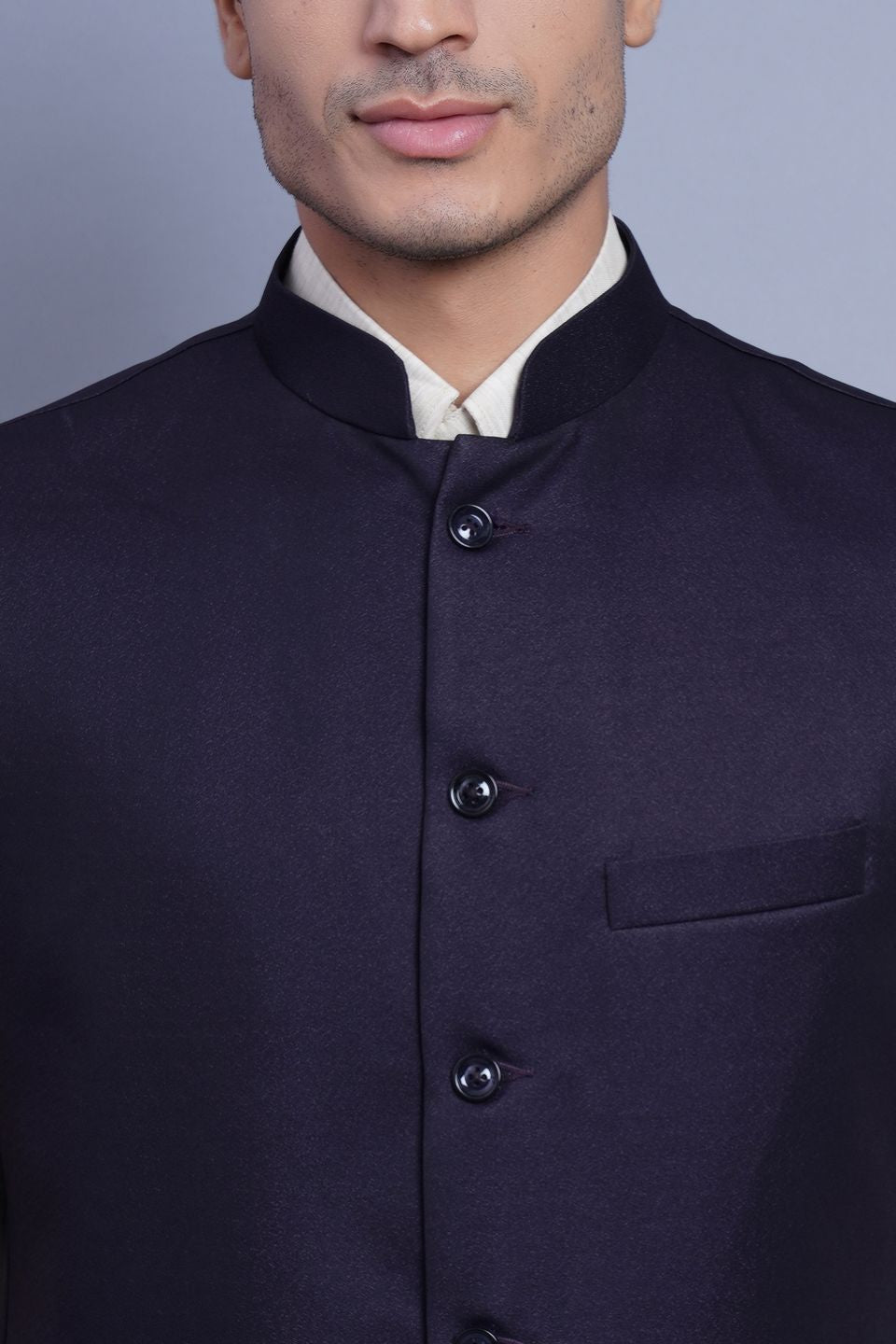 Poly Blend Violet Nehru Jacket
