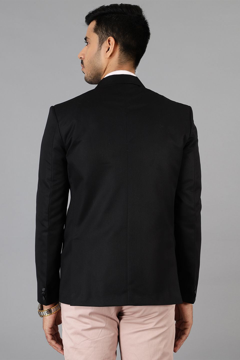Polyster Cotton Black Tuxedo Blazer with Gold Embroidery