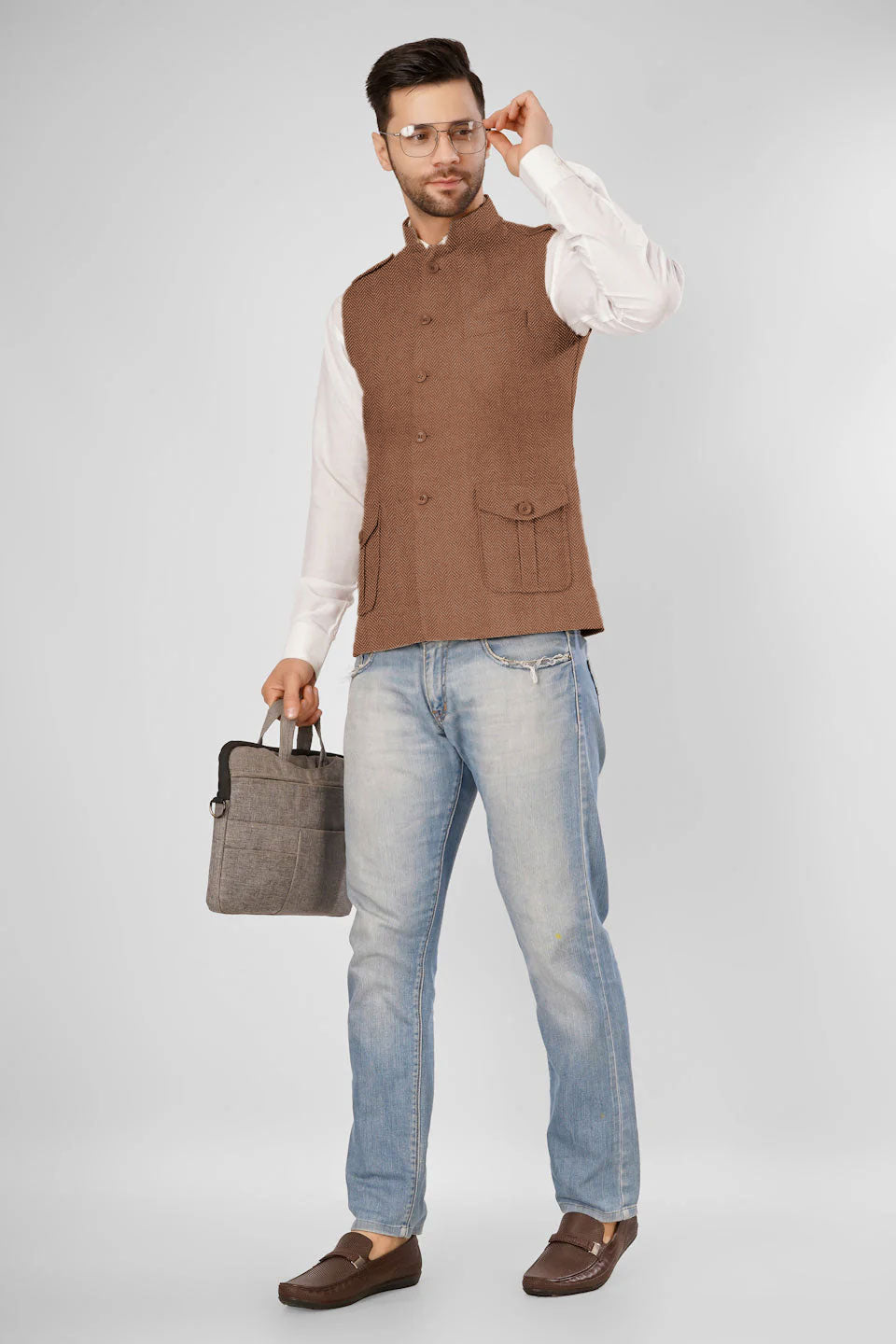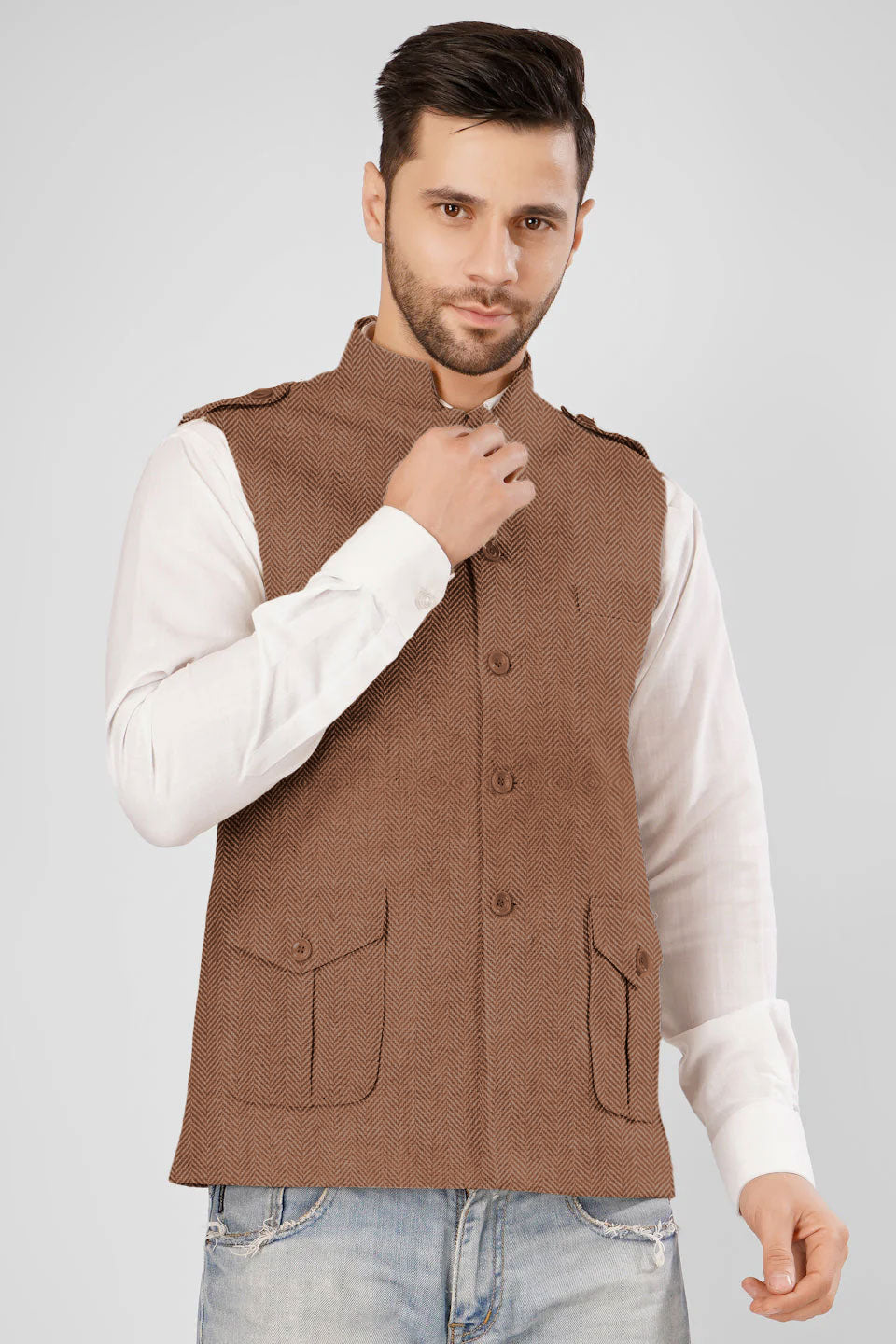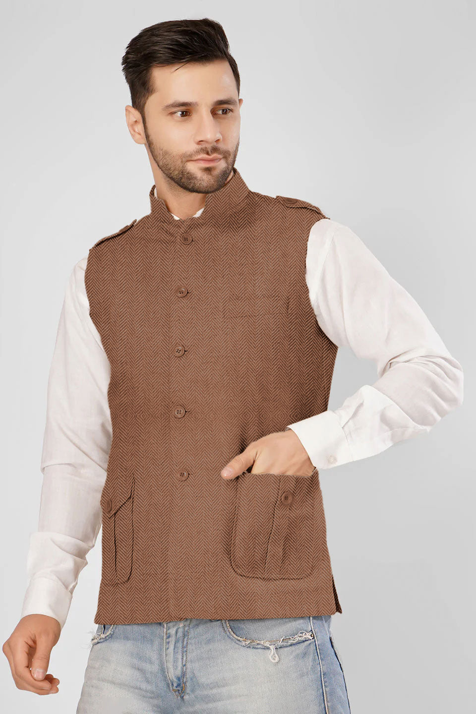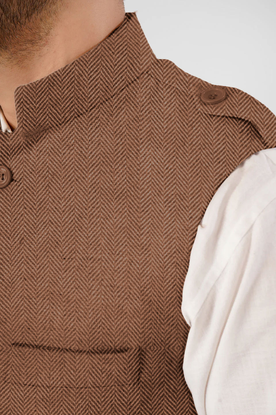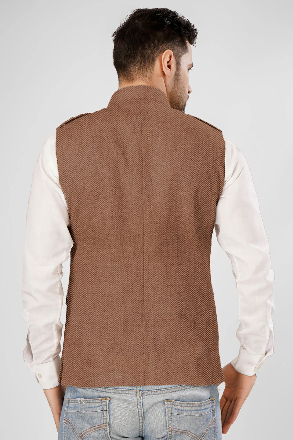 Tweed Wool Blend Brown Modi Nehru Jacket