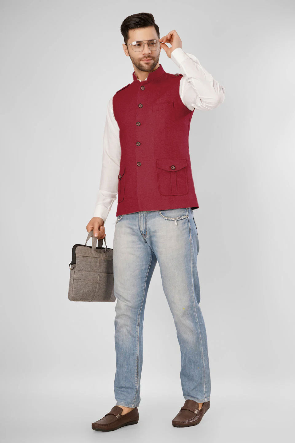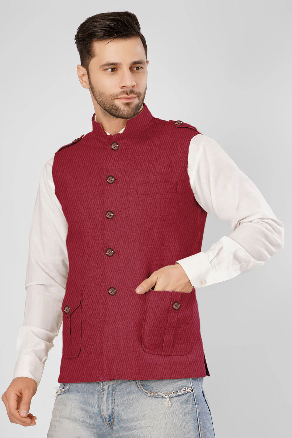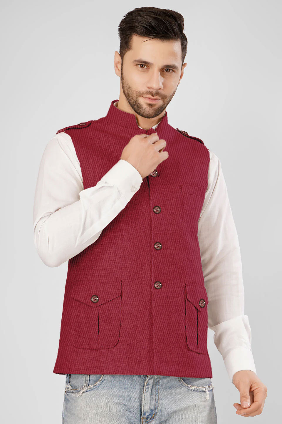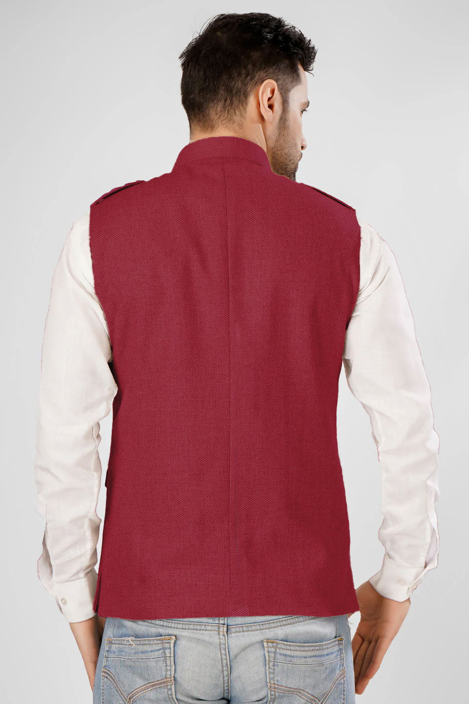 Tweed Wool Red Modi Nehru Jacket